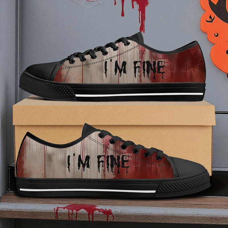 $75.99“I’m Fine” Bloody Splatter Edition | Custom Horror Shoes & Low Top Sneakers